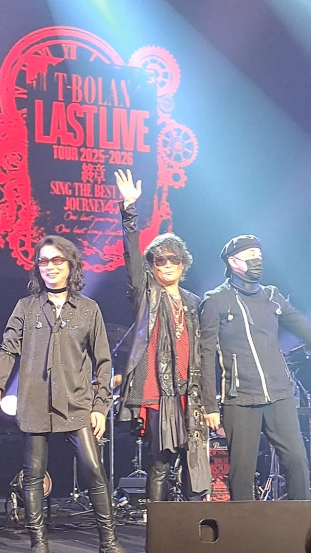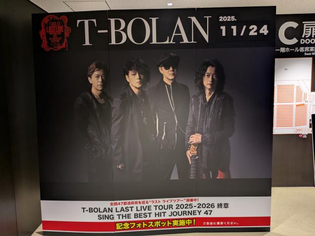 110月13日(月・祝)大阪:東京建物 Brillia HALL 箕面(箕面市立文化芸能劇場) 大ホール初のT-BOLANのライブでした。 若い頃、ずっと聴いてたのでラストライブツアーと知り行きたいと思いました。行って良かったです。上野さんのお姿に感動し、五味さんのパフォーマンスにキュンキュン、嵐士さんの歌声に涙し、会場をハイタッチして回るとき、座席が真ん中でしたが「私、はじめて来たんです。」というと、回りの方が 通路側にどうぞと席を変わってくれました。とても心温まる対応で、これまた涙です。初めてのライブでこんな素敵で貴重な体験した私は、来年行けれそうな会場をエントリーしまくりました。 4カ所の会場に行けることになり、しっかりT-BOLANの世界を満喫したいと思います。