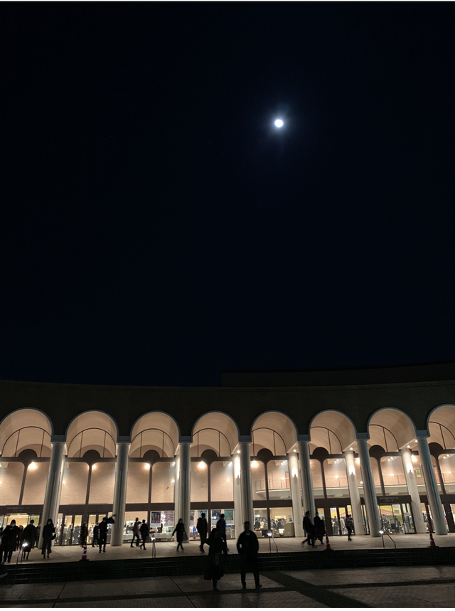 幸せな気分で会場をでて、振り返ると笑顔のファンとステキな会場、そして満月まで1日早いけどとてもきれいな月が。