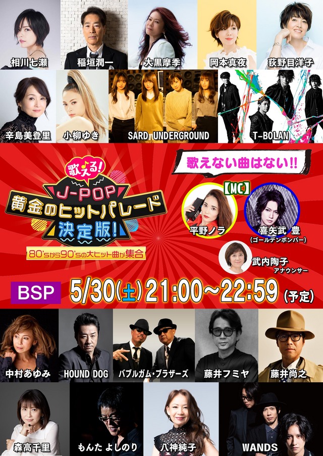 番組名:NHK【BSプレミアム】「歌える!J-POP 黄金のヒットパレード決定版!」