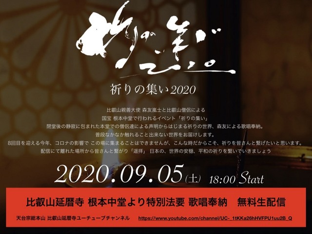 【比叡山延暦寺 祈りの集い2020】開催決定&YouTubeでのライブ配信決定!